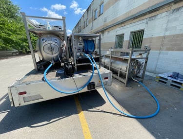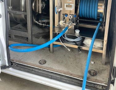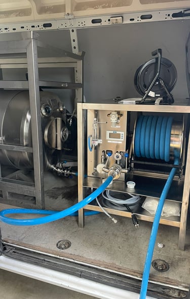 La module de transfer dispose d’un kit de purge et nettoyage du tuyau, ce qui permet de transférer 99% de la bière transportée, et de nettoyer le tuyau facilement avec les produits traditionnels.