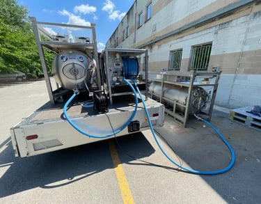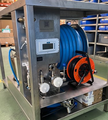 Notre module de transfert compacte, permet de passer au format tank rapidement et à moindre coût. Facile d’utilisation, de nettoyage et aux dimesions standards (1200 x 800 x 1000), on peut le placer dans un véhicule léger (3,5T) avec un Tank de transport 1000L, pour réaliser les livraisons même dans un seul établissement.